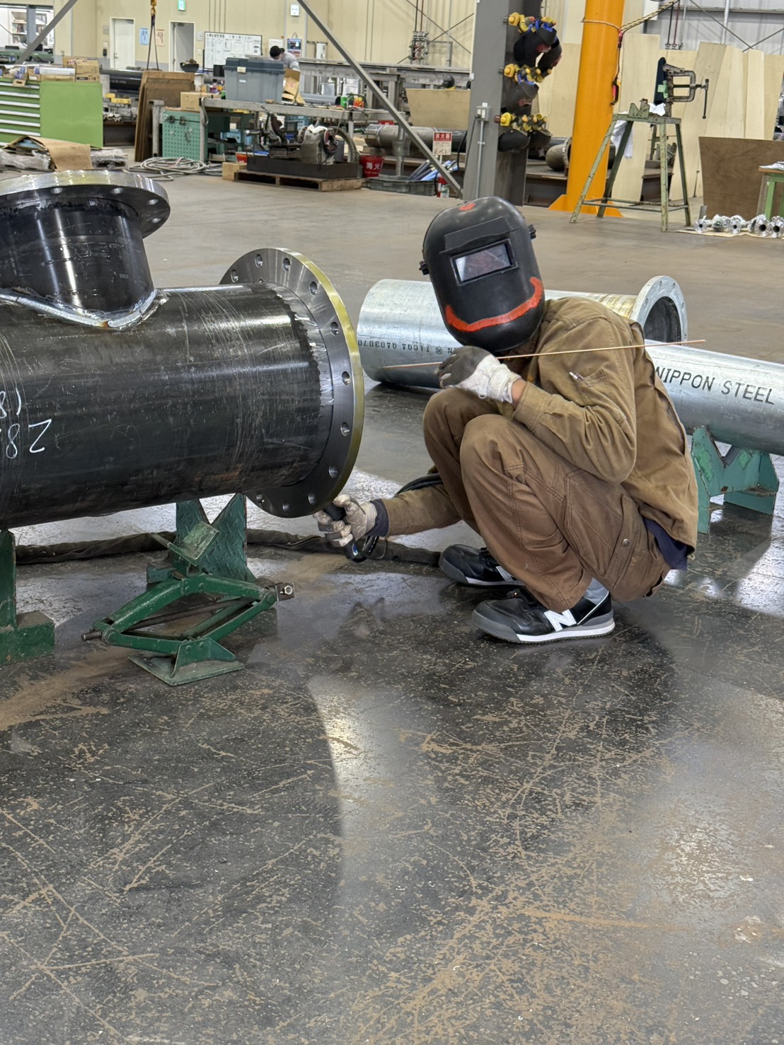 現場で必要な技術をしっかり身につけ、戦力として配管製作に携わっています。