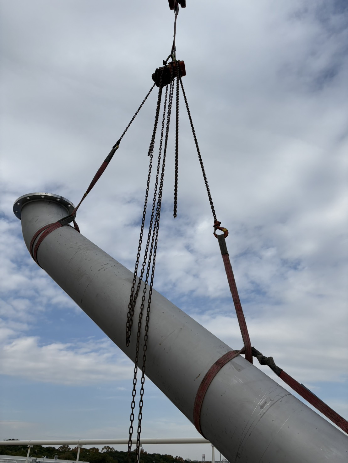 今日は現場で 大口径(デカい)配管の取付け を行いました。