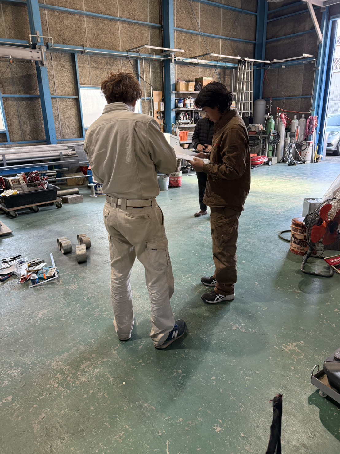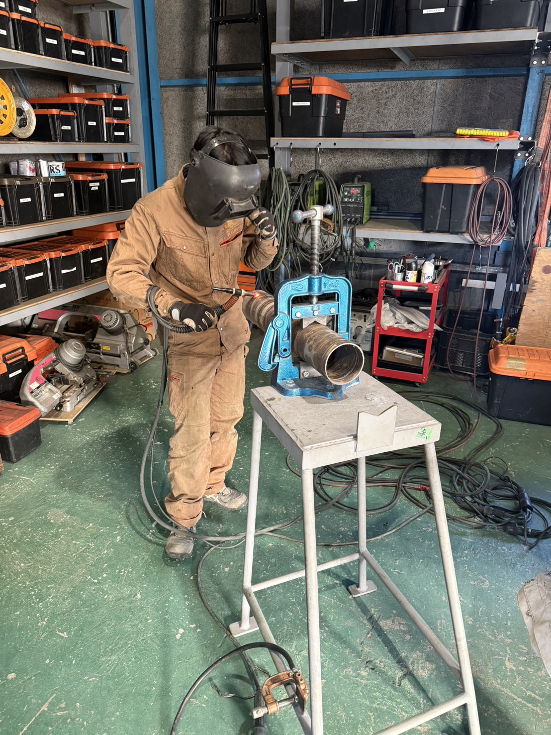 実習生の2人が、自分たちで溶接の練習を始めていたそうです。