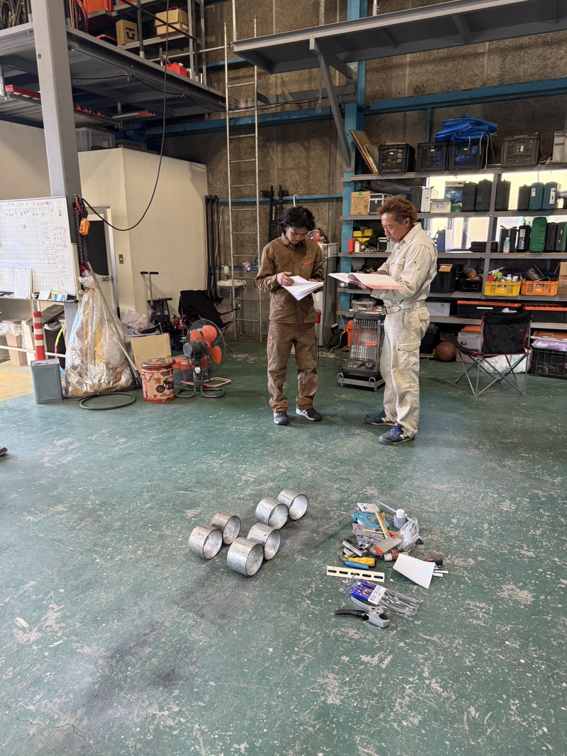 普段は現場で道具振ったり、配管担いだりしてる彼らだけど、今日は“試験モード”。